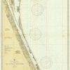 This coastal survey was printed by the U.S. Navy Hydrographic Office in Washington D.C. Details include the names of cities and waterways along the coast. Depth soundings are shown in fathoms. Other details that maybe included are lighthouses and buoy positions.