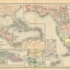 This beautiful, hand colored, steel plate engraved map showing Florida, the West Indies, Cuba, Bermuda, the Nicaragua and Panama Canals, the Island of Tehuantepec and Jamaica was made by William Bradley & Bros. in 1889. Pastel color distinguishes regions on this very detailed map from the hard to find map-maker. Territories, important cities, rivers, lakes, and mountain ranges are identified on the map.