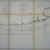 This black and white, antique coastal survey was made for the United States Coast Survey. The surveys provide depth readings and notes on important coastal characteristics of the area mapped. The names of harbors, rivers, islands, channels, shoals, capes, inlets, and coastal towns are identified on the map. These charts show areas that have likely undergone significant changes due to modifications and recessions of coastal lands, making them fascinating to anyone interested in local geography and history. Includes the official Coast Survey Office Seal. Note: Age toning around the folds in these maps is quite common. Map is sold folded as issued.