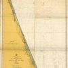 This coastal survey was printed by the U.S. Navy Hydrographic Office in Washington D.C. Details include the names of cities and waterways along the coast. Depth soundings are shown in fathoms. Other details that maybe included are lighthouses and buoy positions.