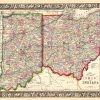 The Mitchell company was one of the first to try out the new technique of engraving on steel plates experimenting with steel almost 20 years before the rest of the publishing industry. He was printing with steel in the early 1830s; the general switch to steel was approximately 1850. During the early years of the company, Mitchell published mainly maps and travel guides. In 1860, Mitchell started producing “Mitchell’s New General Atlas”,and Mitchell Sr. retired and turned the business over to his son of the same name. The New General Atlas was published until 1893. Today Mitchell maps are sought after for their fine engraving, bright coloring, and attention to detail. They are some of the finest maps produced during this time period. This map produced in 1866, has Mitchell’s unique floral border, and beautiful hand coloring. This map details the states of Ohio and Indiana. Counties, cities, towns, lakes, rivers, mountains, and transportation routes are noted. Each map was printed on thick paper with vibrant hand color.