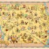 This charming antique pictorial map was published in 1935 by the famous mapmaker & illustrator, Ruth Taylor (White). These illustrated maps came from the atlas, “Our U.S.A – A Gay Geography,” with text by Frank Taylor & the maps done by Ruth Taylor. Ruth Taylors maps have become increasingly rare. Her whimsical maps are bold, colorful, and full of life; showing the local feel, cultural stereotypes, industries and activities of the area. These maps have become very difficult to find and would be a great addition to any map collection.