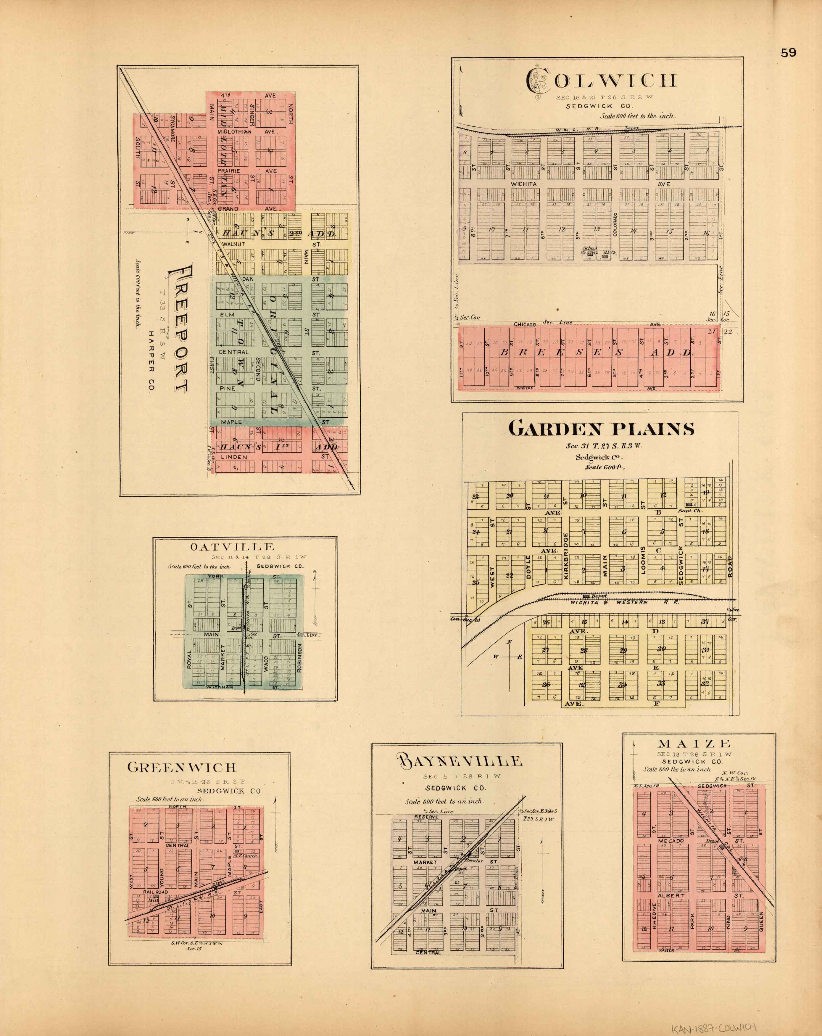 L.H. Evert’s 1887 Map of Colwich, Freeport, Garden Plains, Oatville, Greenwich, Bayneville, and Maize, Kansas