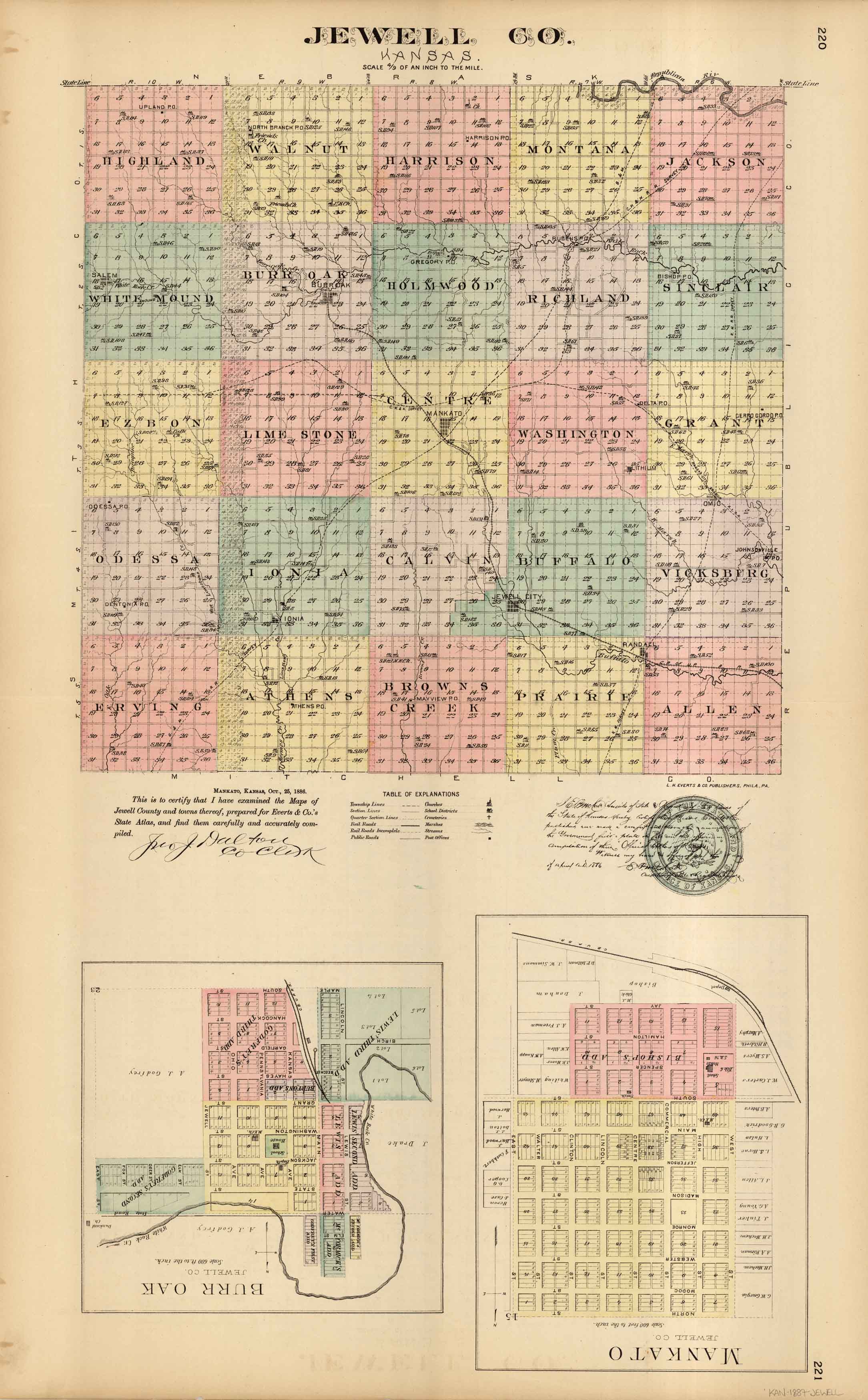L.H. Evert’s 1887 Map of Mankato, Burr Oak, and Jewell County, Kansas