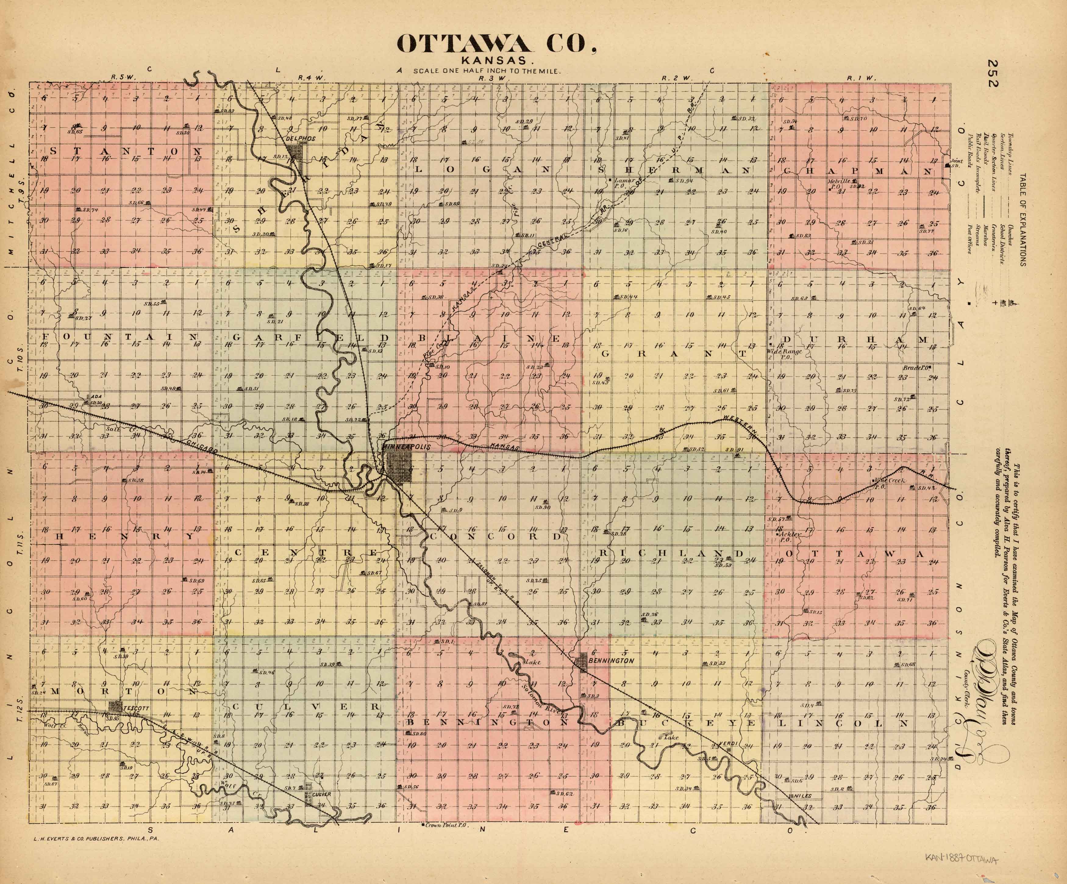 L.H. Evert’s 1887 Map of Ottawa County, Kansas
