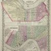 Art Source International is proud to offer this map from the 1859 edition of Coltons General Atlas. Colton atlases, especially those from the late 1850’s, have become increasingly rare. The General Atlas was the first single edition atlas published by the Colton brothers succeeding the expensive two volume Atlas of the World. These maps have the signature * inch Colton border surrounding each map. The Colton firm refused to compromise quality, choosing to compete for sales in the finer quality international market rather than the cheap domestic one. Because of this, all maps were engraved by steel plates rather than by wax engraving which was the most common method used at this time. This map of the cities Louisville and New Orleans is very detailed with identification of streets, rail roads, important buildings, canals, creeks and rivers. Each map has beautiful muted red, green, tan, pink, and yellow hand coloring used to distinguish regions.