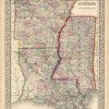 The Mitchell company was one of the first to try out the newtechnique of engraving on steel plates, experimenting with steelalmost 20 years before the rest of the publishing industry. Hewas printing with steel in the early 1830s; the general switch tosteel was approximately 1850. During the early years of thecompany, Mitchell published mainly maps and travel guides. In1860, Mitchell started producing “Mitchell’s New General Atlas”,and Mitchell Sr. retired and turned the business over to his sonof the same name. The New General Atlas was published until1893. Today Mitchell maps are sought after for their fineengraving, bright coloring, and attention to detail. They aresome of the finest maps produced in the 1860’s. This mapproduced in 1867, has Mitchell’s unique floral border, and beautiful hand coloring. This map details the states of Arkansas, Mississippi, and Louisiana. Counties, cities, towns, railroads, transportation routes and topographical features are noted.