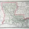 This detailed map of Louisiana was printed in the “Peoples Family Atlas of the World,” published in 1889. This map shows a great deal of topographical information, including lakes, mountains, and rivers. This map has all counties outlined in green and state boundaries outlined in pink. Railroad lines are also shown. ‘