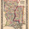 The Mitchell company was one of the first to try out the new technique of engraving on steel plates, experimenting with steel almost 20 years before the rest of the publishing industry. He was printing with steel in the early 1830s; the general switch to steel engraving was approximately 1850. During the early years of the company, Mitchell published mainly maps and travel guides. In 1860, Mitchell started producing “Mitchell’s New General Atlas”. Mitchell Sr. retired and turned the business over to his son of the same name. The New General Atlas was published until 1893. Today Mitchell maps are sought after for their fine engraving, bright coloring, and attention to detail. They are some of the finest maps produced in the 1860’s. This map, produced in 1863, shows Mitchell’s famous flower border, which is only seen in the early editions of his atlases. This map shows Louisiana, Mississippi, and Arkansas.