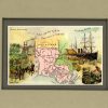 Founded in the 1860s, the Arbuckle Coffee Company grew and expanded with 19th century America. It was a staple the cowboys carried with them on the trail, and a commodity commonly found in American homes at the time. The Arbuckle Company made a unique advertising effort in the late 1880’s and began to enclose small decorative trade cards in their packages of coffee. The front of the card contained a colorful image of children, flowers, sports or even a map, while the back of the card had their advertising and some descriptive information. Later these trade cards became so collectible that the company focused on their success and issued them separately as premiums. These charming map cards illustrate beautifully the history and character the lands. Each map shows lakes and rivers, cities and towns, forts, the population, and area in square miles. Each card measures 3 1/4″ x 5 1/4″. The matted size is 8 x 10 inches.