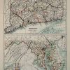 This beautiful map was made by Adam and Charles Black in 1889 for the library eddition of “The Scribner-Black Atlas of the World”. Connecticut and Maryland are illustrated on this map. An inset shows the states at a smaller scale. The names of regions and important cities, railroads, lakes and rivers are identified. These maps are in very good condition with only slight age toning and bright crisp color.