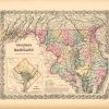Art Source International is proud to offer this map of Delaware and Maryland from the 1856 edition of Coltons Atlas of the World. Colton atlases, especially those from the 1850’s, have become increasingly rare. The Colton maps were engraved by steel plates rather than by wax engraving, which was the most common method used at this time. These maps are very detailed in beautiful hand colored pastels, and feature Colton’s signature 3/4 inch border. This map shows cities, towns and villages, transportation routes, common roads, canals, rivers and lakes, and other geographical features. ‘