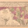 This antique map came from Johnson’s New Illustrated (Steel Plate) Family Atlas, published in 1867, by A.J. Johnson. These maps are some of the most colorful and accurate maps produced in the 1860’s, their attention to detail and the fine steel engraving make them works of art. Johnson maps are characterized by hand coloring in red, green, yellow, and pink and distinctive borders, including iron scrollwork and a Celtic design. This beautiful map of the States of Delaware and Maryland shows counties, cities and towns, lakes, rivers, and water bodies, railroads, forts, and wagon trails. A fine piece that would make a nice addition to any wall in a home or office. Includes an inset map of the District of Columbia.