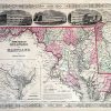 This antique map came from Johnson’s New Illustrated (Steel Plate) Family Atlas, published in 1863, by Johnson and Ward. These maps are some of the most colorful and accurate maps produced in the 1860’s. Johnson maps are characterized by hand coloring in red and green and distinctive borders, including iron scrollwork and a Celtic design. This beautiful state map includes an inset of the District of Columbia and depictions of the General Post Office, the Treasury Buildings and the Patent Office.