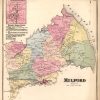 This beautiful, hand colored map is from the “Atlas of the State of Delaware” made by D. G. Beers in 1868. Details include the names of counties, cities, townships, important property owners, geographical features and railroad lines, as well as pastel coloring to distinguish regions. Milford in Kent County is illustrated on this map with an inset of Harrington. Local buisinesses in Harrington are listed below the map.