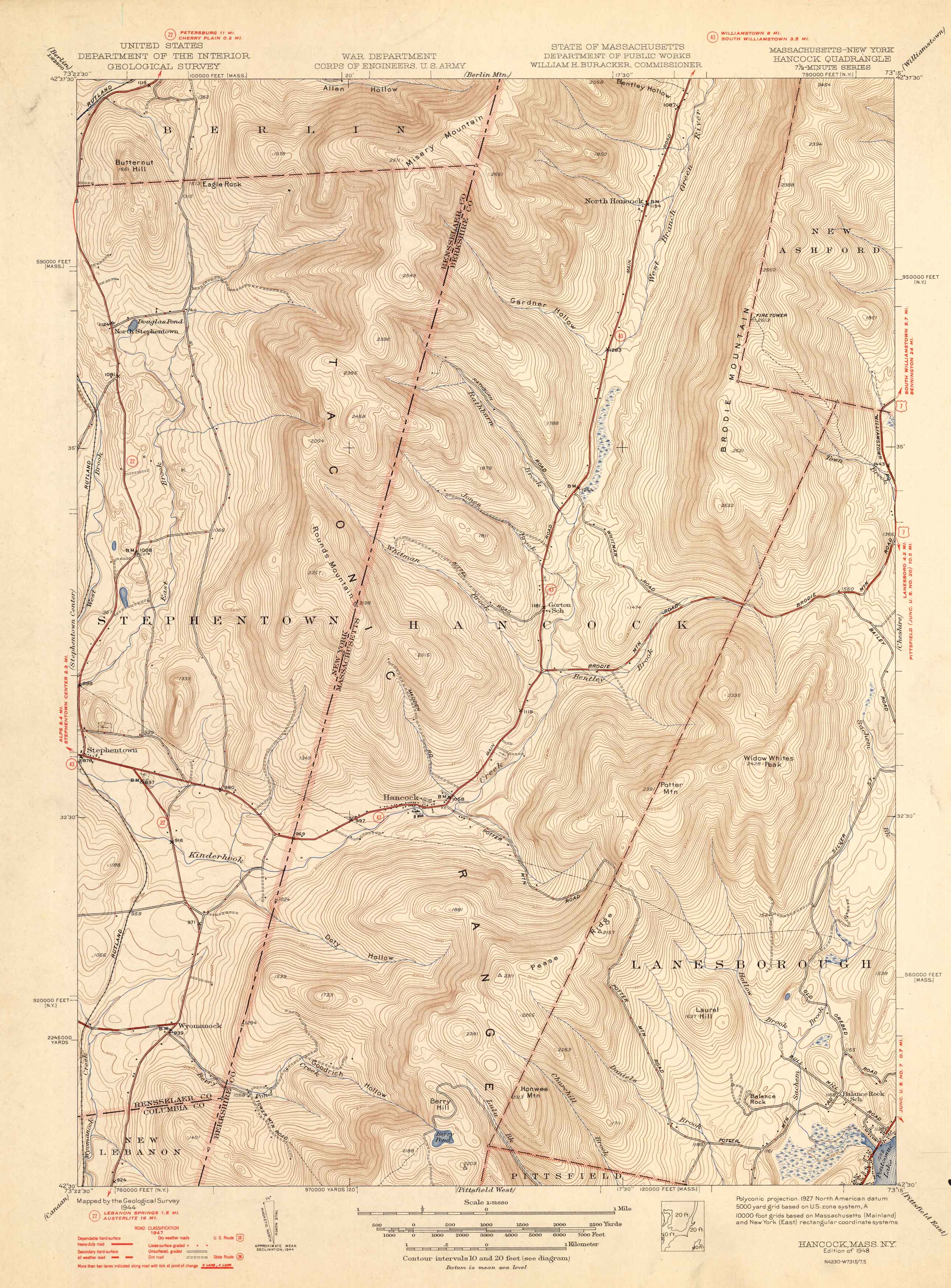 U.S. Geologic Survey 1948 Map of Hancock, Massachusetts