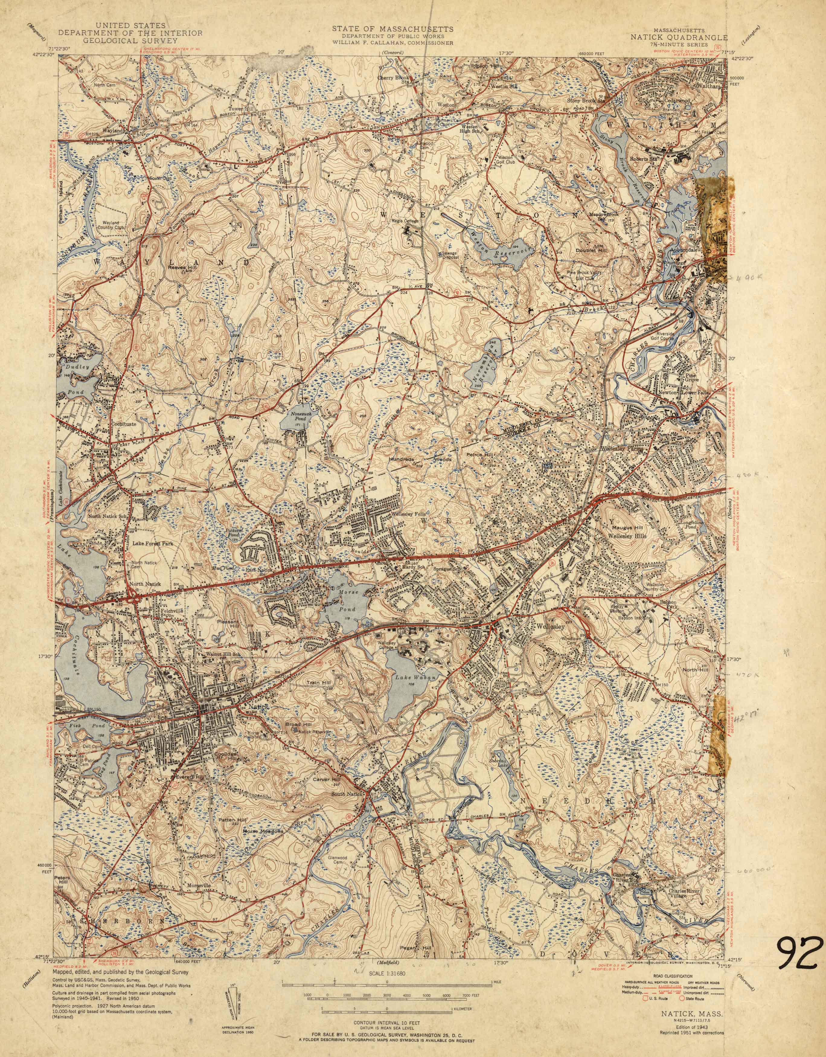 U.S. Geologic Survey 1951 Map of Natick, Massachusetts