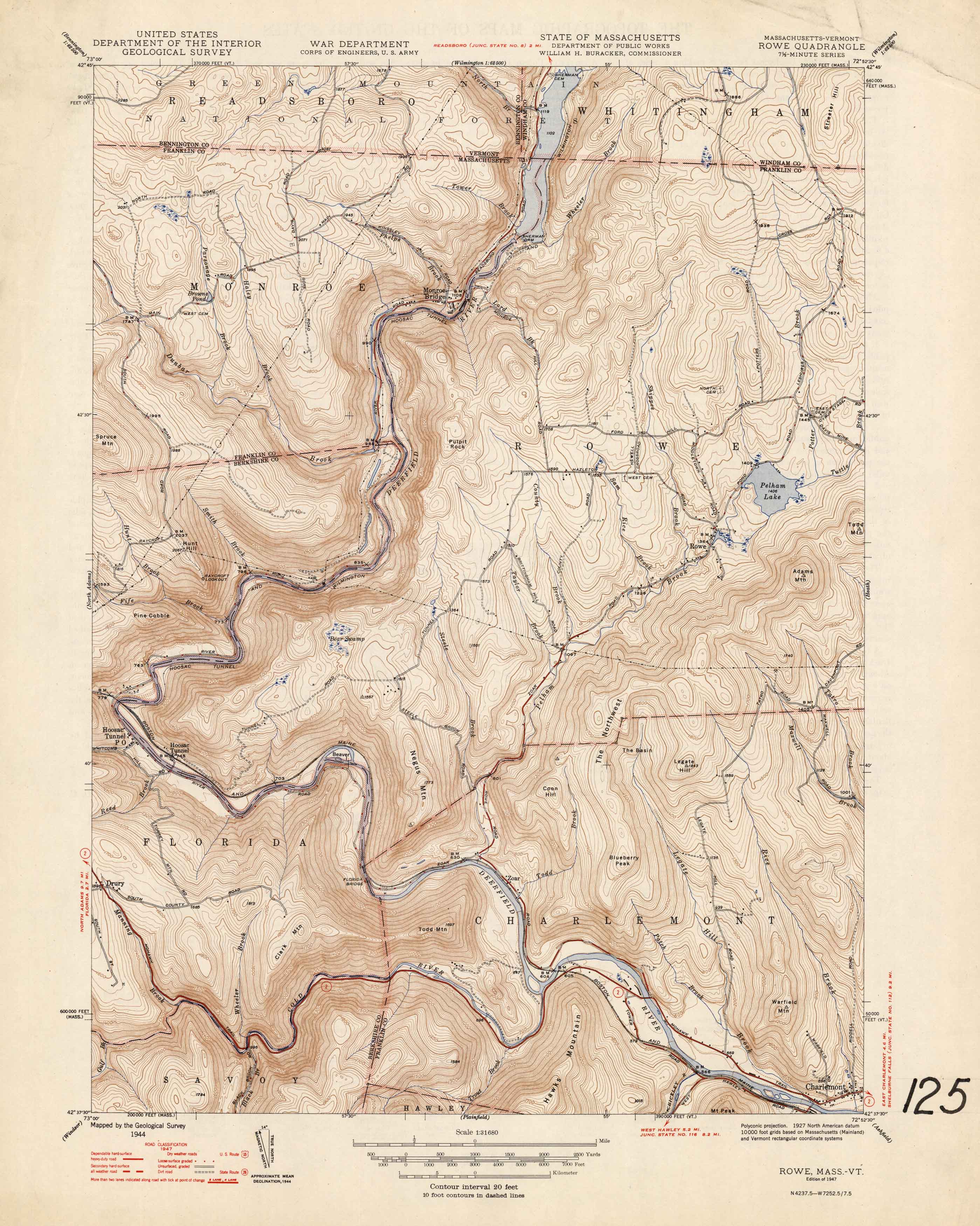 U.S. Geologic Survey 1947 Map of Rowe, Massachusetts
