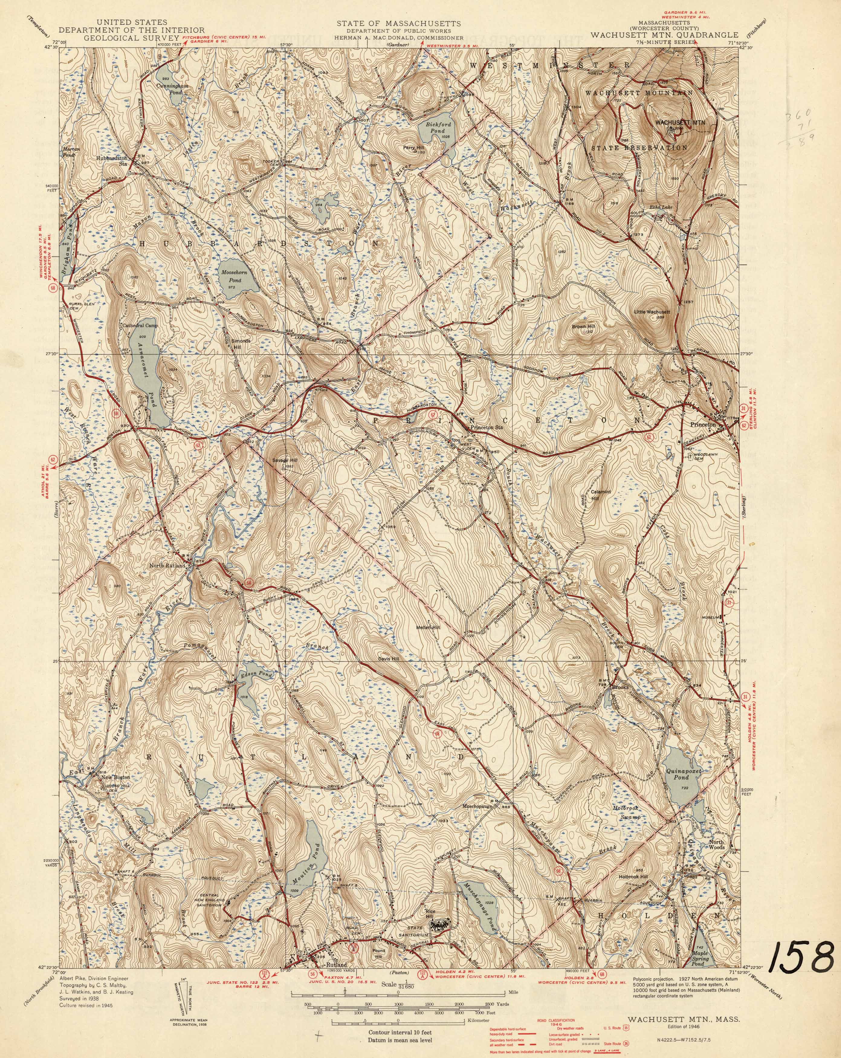 U.S. Geologic Survey 1946 Map of Wachusett Mountain, Massachusetts