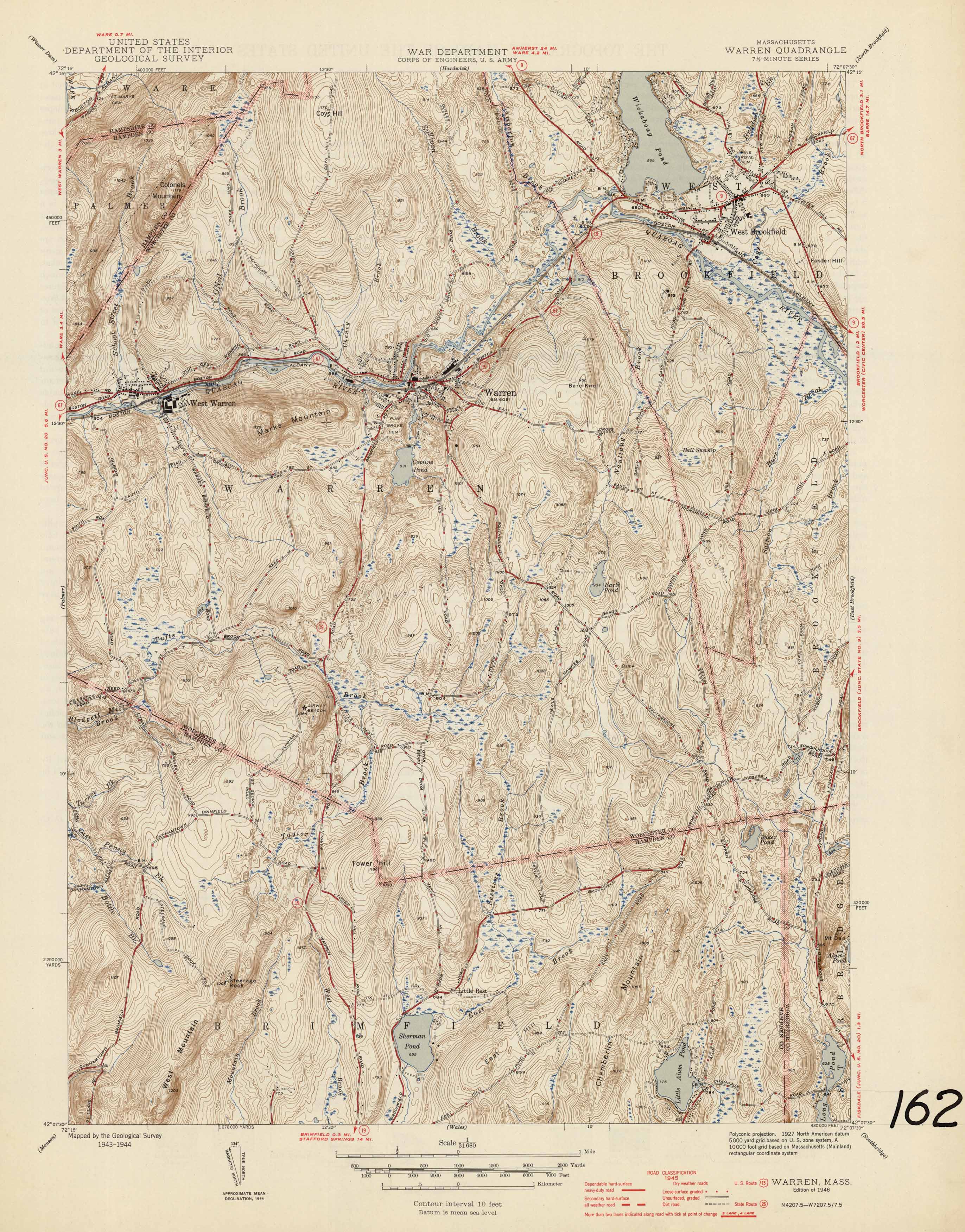 U.S. Geologic Survey 1946 Map of Warren, Massachusetts
