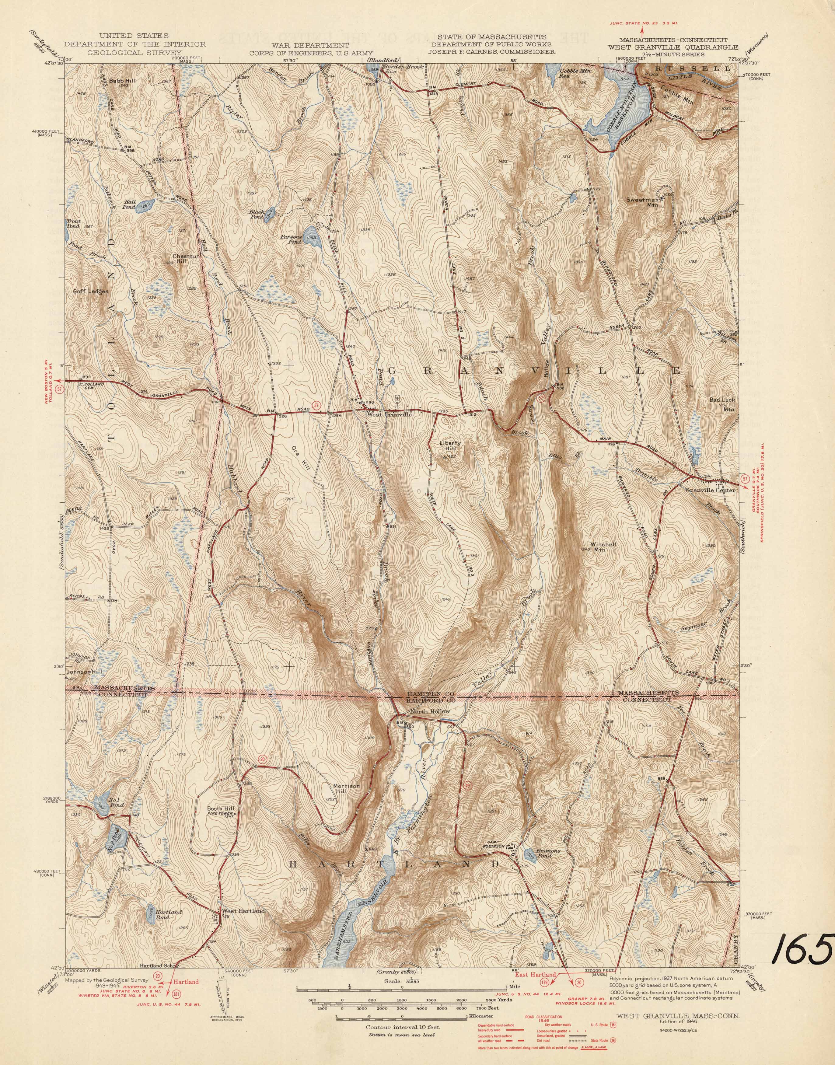 U.S. Geologic Survey 1946 Map of West Granville, Massachusetts