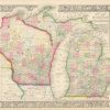 Mitchell’s 1865 County Map of Michigan and Wisconsin