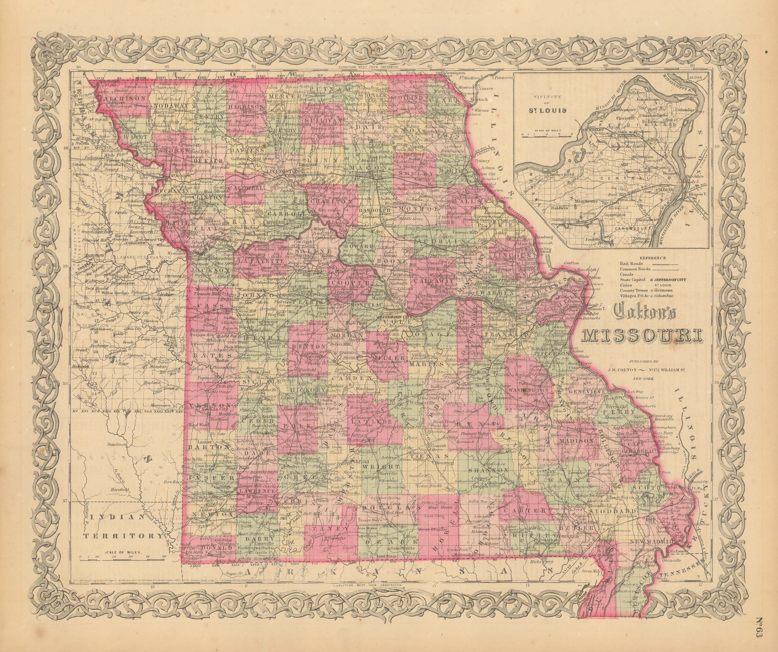 We are pleased to offer this map issued as part of Colton’s General Atlas, published in 1865. The Civil War ended April 9, 1865 and this atlas was one of the first post-Civil War atlas’ published. Colton continued his tradition of beautiful hand coloring with this atlas.