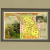 Founded in the 1860s, the Arbuckle Coffee Company grew and expanded with 19th century America. It was a staple the cowboys carried with them on the trail, and a commodity commonly found in American homes at the time. The Arbuckle Company made a unique advertising effort in the late 1880’s and began to enclose small decorative trade cards in their packages of coffee. The front of the card contained a colorful image of children, flowers, sports or even a map, while the back of the card had their advertising and some descriptive information. Later these trade cards became so collectible that the company focused on their success and issued them separately as premiums. These charming map cards illustrate beautifully the history and character the lands. Each map shows lakes and rivers, cities and towns, forts, the population, and area in square miles. Each card measures 3 1/4″ x 5 1/4″. The matted size is 8 x 10 inches.