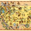 This charming antique pictorial map was published in 1935 by the famous mapmaker & illustrator, Ruth Taylor (White). These illustrated maps came from the atlas, “Our U.S.A – A Gay Geography,” with text by Frank Taylor & the maps done by Ruth Taylor. Ruth Taylors maps have become increasingly rare. Her whimsical maps are bold, colorful, and full of life; showing the local feel, cultural stereotypes, industries and activities of the area. These maps have become very difficult to find and would be a great addition to any map collection.