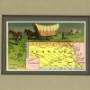 Founded in the 1860s, the Arbuckle Coffee Company grew and expanded with 19th century America. It was a staple the cowboys carried with them on the trail, and a commodity commonly found in American homes at the time. The Arbuckle Company made a unique advertising effort in the late 1880’s and began to enclose small decorative trade cards in their packages of coffee. The front of the card contained a colorful image of children, flowers, sports or even a map, while the back of the card had their advertising and some descriptive information. Later these trade cards became so collectible that the company focused on their success and issued them separately as premiums. These charming map cards illustrate beautifully the history and character the lands. Each map shows lakes and rivers, cities and towns, forts, the population, and area in square miles. Each card measures 3 1/4″ x 5 1/4″. The matted size is 8 x 10 inches.