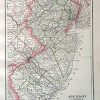 This detailed map of New Jersey was printed in the “Peoples Family Atlas of the World,” published in 1889. This map shows a great deal of topographical information, including lakes, mountains, and rivers. This map has all counties outlined in green and state boundaries outlined in pink. Railroad lines are also shown. ‘