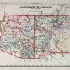This hand colored map was made by O.W.Gray and son in 1886 for “The National Atlas”. Arizona and New Mexico are illustrated on this map. Counties are distinguished by bright pastel color. Other details include the names of counties and important cities, and illustrations of rivers, lakes, railroads, and mountains.