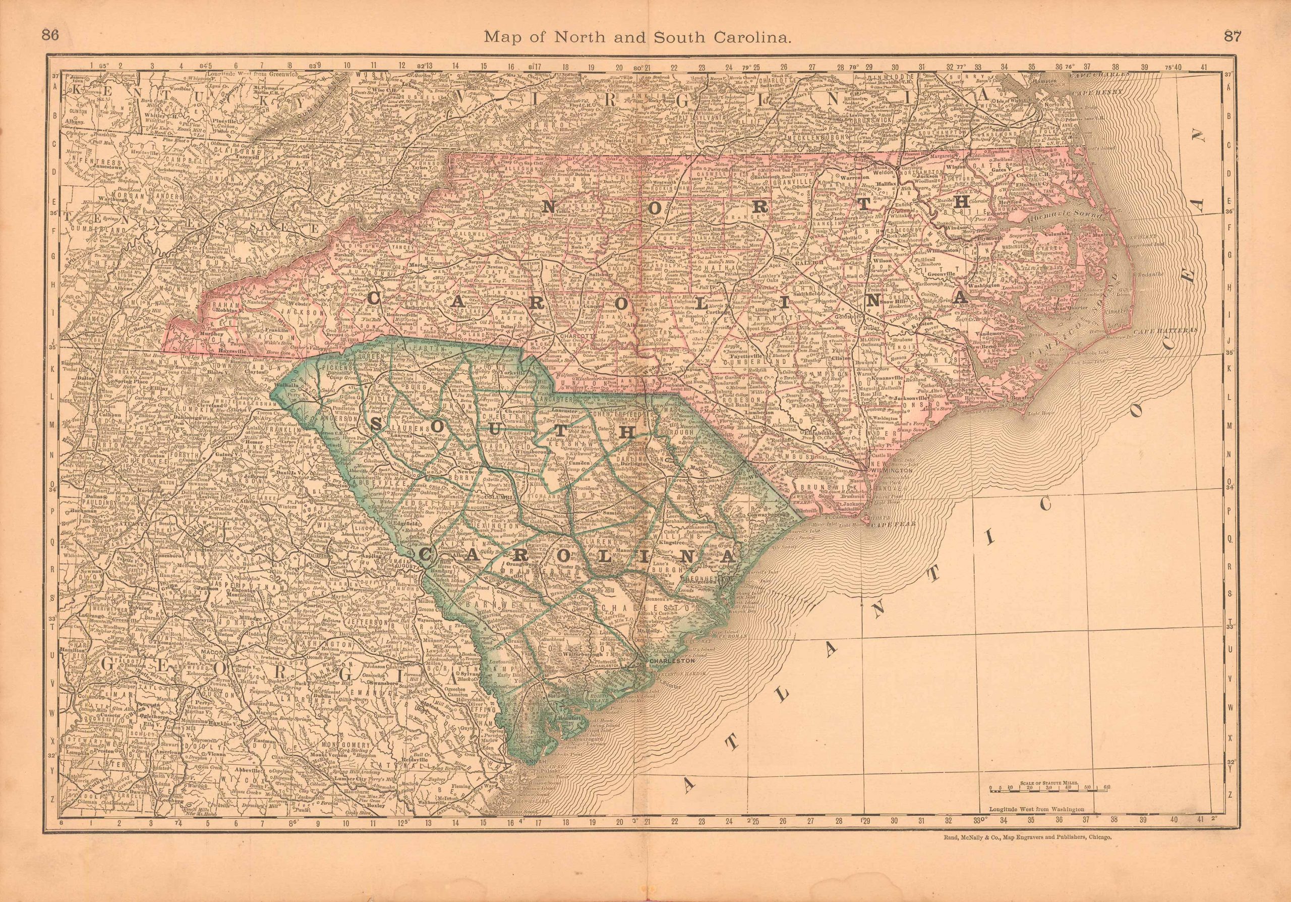 This antique map originally appeared in the “Historical Hand-Atlas” produced in 1881 by H.H. Hardesty & Co. These maps show many details including cities and towns, lakes and rivers, and most important the existing railroad network. Each railroad is designated by a black or red line, which is also labeled with the name of the railroad.