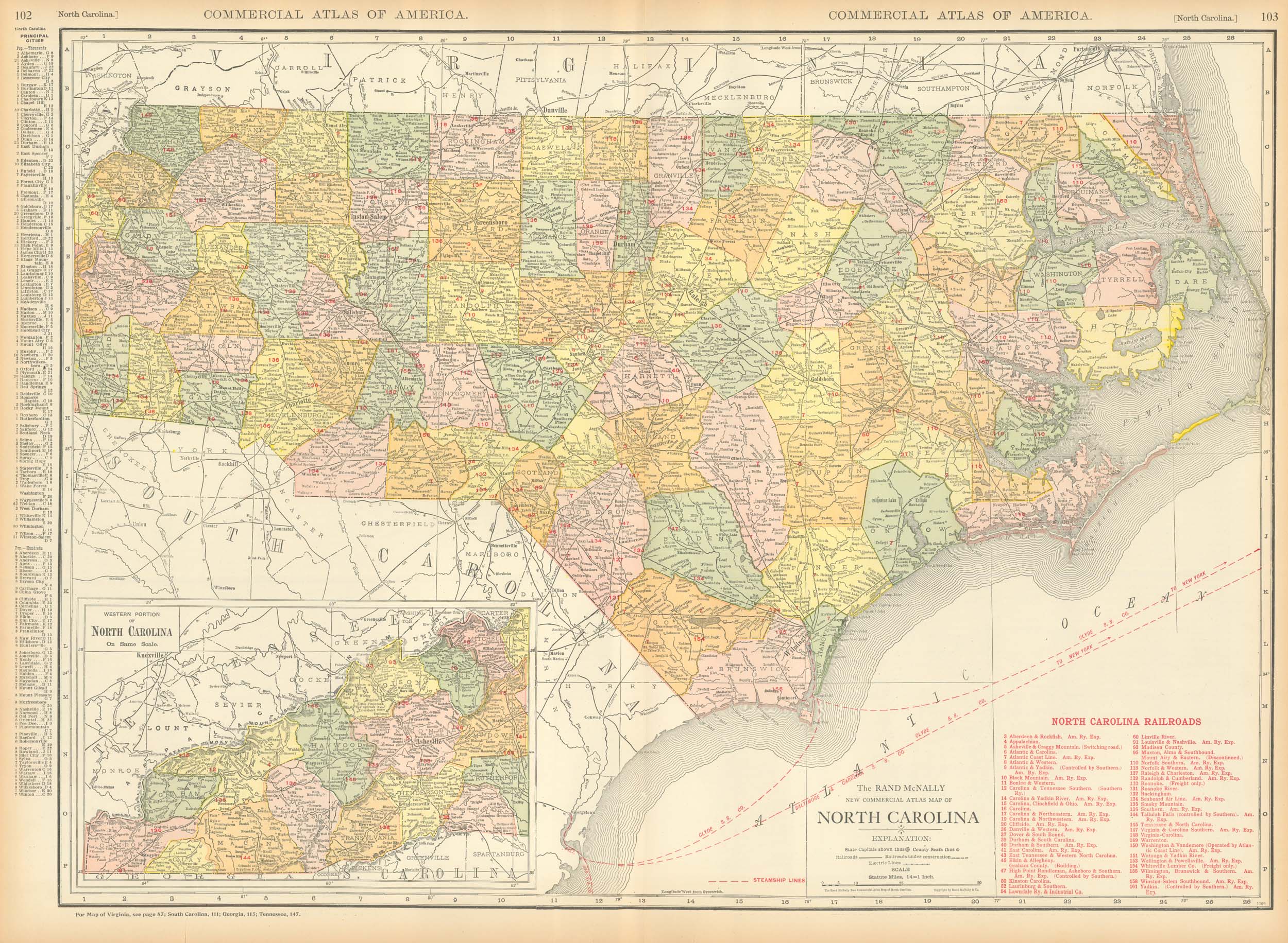 We are proud to offer this wonderful large scale map originally issued as part of Rand McNally’s Commercial Atlas of America in 1919. The maps from this atlas were larger than most atlas’ published at the time and show many more cities and towns. All railroad lines were drawn in red and numbered with a listing of all railroads operating in the area on each map. William H. Rand founded the company in 1856 and incorporated it in 1873 with his partner Andrew McNally. They published their first atlas, The Business Atlas, in 1877. Rand McNally and Company is the oldest business of its kind in the country.