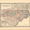 Art Source International is proud to offer this map of North Carolina from the 1856 edition of Coltons Atlas of the World. Colton atlases, especially those from the 1850’s, have become increasingly rare. The Colton maps were engraved by steel plates rather than by wax engraving, which was the most common method used at this time. These maps are very detailed in beautiful hand colored pastels, and feature Colton’s signature 3/4 inch border. This map shows cities, towns and villages, transportation routes, common roads, canals, rivers and lakes, and other geographical features.