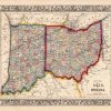 This beautiful map of Ohio and Indiana was made by S. Augustus Mitchell, in 1860, for his New General Atlas. This map features bright original hand coloring that differentiates regions and county sections, a decorative floral border, and fine detailing (including cities, rivers, and roads).