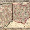 With characteristic floral boarders and beautiful, muted pastel coloring, these 1864 maps are fantastic examples of Mitchells work. Counties, important cities, mountain ranges, rivers, lakes, and railroads are identified. This hand colored map illustrates the states of Indiana and Ohio.