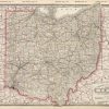 This map is from the extremely rare and well maintained 1890 edition of the county and railroad atlas made by George F. Cram. Each state map is mostly black and white with bright coloring used to highlight county and state borders. The names of counties, important towns, rivers, Indian reservations, creeks, lakes and mountain ranges are identified, as well as railroads and the names of station stops. This map illustrates Ohio. Crams distinctive title plates, coloring, and topographical details found on the maps in this hard to find 1890 atlas make them outstanding collectible pieces.