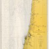 This coastal survey was printed by the U.S. Navy Hydrographic Office in Washington D.C. Details include the names of cities and waterways along the coast. Depth soundings are shown in fathoms. Other details that maybe included are lighthouses and buoy positions.