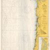 This coastal survey was printed by the U.S. Navy Hydrographic Office in Washington D.C. Details include the names of cities and waterways along the coast. Depth soundings are shown in fathoms. Other details that maybe included are lighthouses and buoy positions.