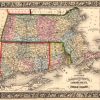 The Mitchell company was one of the first to try out the new technique of engraving on steel plates, experimenting with steel almost 20 years before the rest of the publishing industry. He was printing with steel in the early 1830s; the general switch to steel engraving was approximately 1850. During the early years of the company, Mitchell published mainly maps and travel guides. In 1860, Mitchell started producing “Mitchell’s New General Atlas”. Mitchell Sr. retired and turned the business over to his son of the same name. The New General Atlas was published until 1893. Today Mitchell maps are sought after for their fine engraving, bright coloring, and attention to detail. They are some of the finest maps produced in the 1860’s. This map produced in 1863, shows Mitchell’s famous flower border, which is only seen in the early editions of his atlases. This map shows Massachusetts, Connecticut, and Rhode Island.