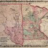 Johnson and Browning produced this steel plate, hand colored map for “Johnsons New Illustrated Family Atlas” in 1862. Minnesota and Dakota (before it was divided into North and South) are illustrated on this detailed map. Counties are distinguished by bright pastel colors. Other details include lakes, rivers, railroads, and the names of states, counties, ad important cities.