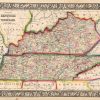 The Mitchell company was one of the first to try out the new technique of engraving on steel plates experimenting with steel almost 20 years before the rest of the publishing industry. He was printing with steel in the early 1830s; the general switch to steel was approximately 1850. During the early years of the company, Mitchell published mainly maps and travel guides. In 1860, Mitchell started producing “Mitchell’s New General Atlas”,and Mitchell Sr. retired and turned the business over to his son of the same name. The New General Atlas was published until 1893. Today Mitchell maps are sought after for their fine engraving, bright coloring, and attention to detail. They are some of the finest maps produced during this time period. This map produced in 1866, has Mitchell’s unique floral border, and beautiful hand coloring. This map details the states of Kentucky and Tennessee. Counties, cities, towns, lakes, rivers, mountains, and transportation routes are noted. Each map was printed on thick paper with vibrant hand color.