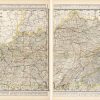 We at Art Source International are excited to offer these rare maps of Kentucky and Tennessee from George F. Crams 1898 “Standard American Railway System Atlas”. There are two maps being offered together, detailing the western and eastern half. These maps are exacting in its detail of railroad routes. All routes, down to the smallest spur line, are denoted in separate colors. Cram was one of the few mapmakers to update these maps yearly.
