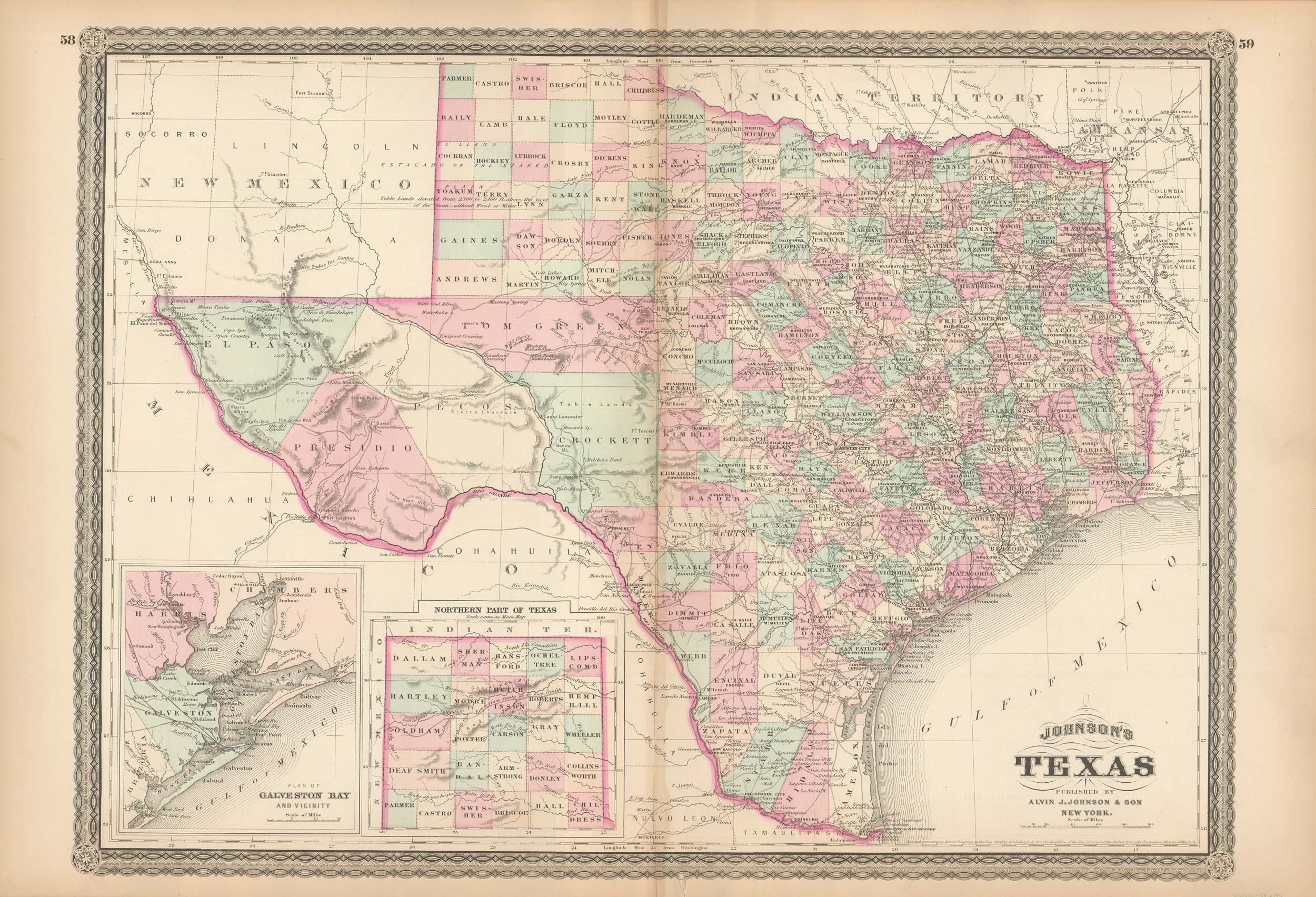 This map was issued as part of “Johnson’s New Illustrated Family Atlas of the World.” This atlas was awarded the first prize medal at the Universal Expositions in Paris in 1867 and 1878. A.J. Johnson published his first atlas in 1860 as successors to J.H. Colton & Co. Editions of this atlas ceased in 1885. These later editions of the Johnson atlas are some of the finest the company ever produced and are known for the geometric border.