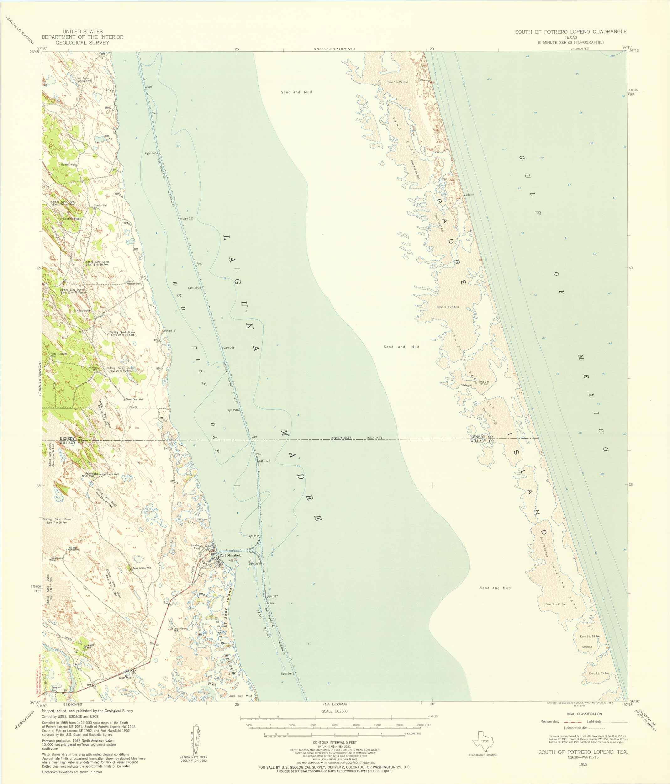 USGS 1952 South of Potrero Lopeno Quadrangle, Texas, Padre Island
