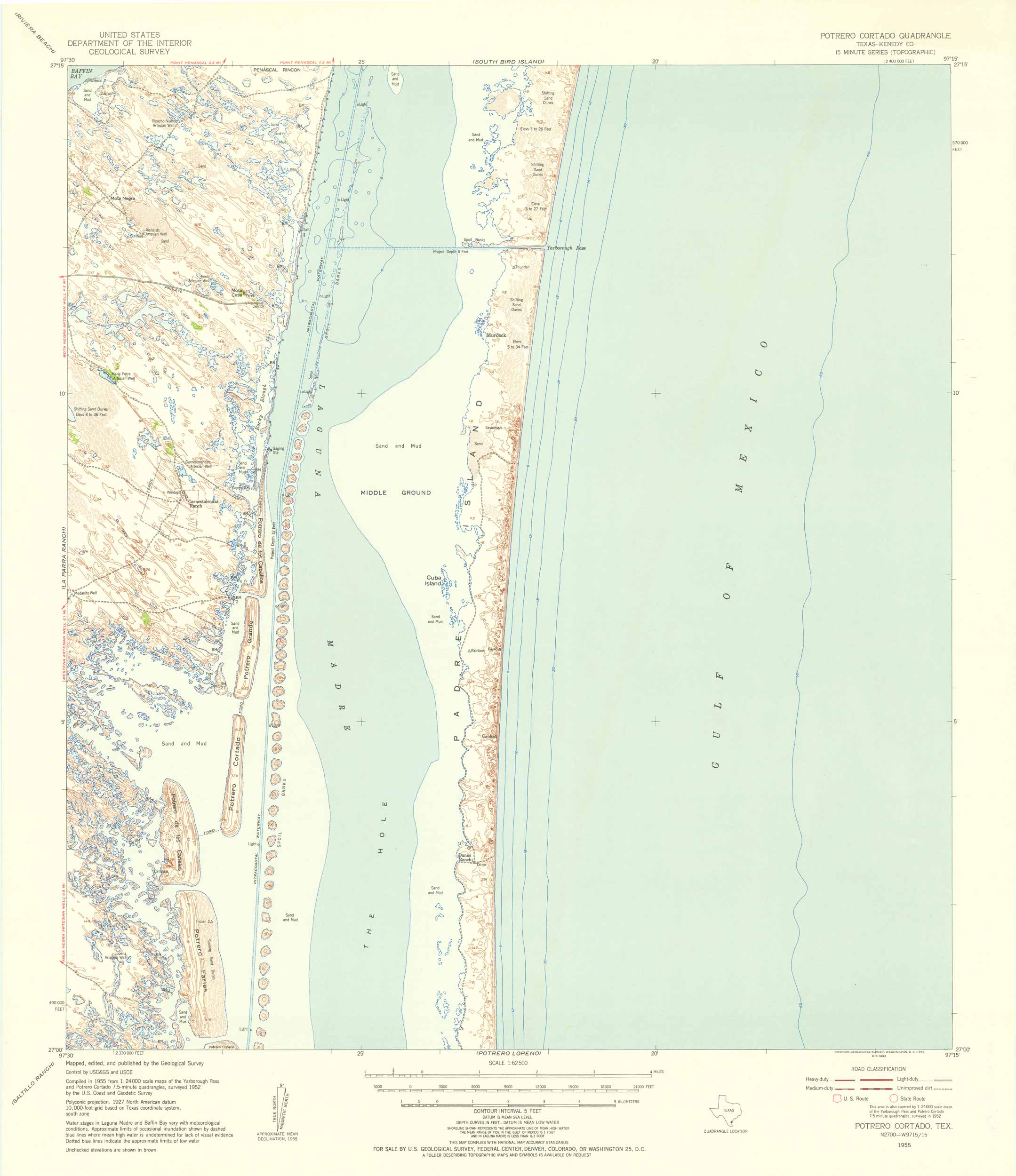 USGS 1955 Potrero Cortado Quadrangle, Texas – Padre Island – Kenedy County