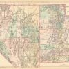 This map was made by S. Augustus Mitchell for “Mitchell’s New General Atlas” published in 1887. The well maintained maps in this atlas feature Mitchell’s characteristic pastel coloring and abundant details of geographical features. Utah and Nevada are illustrated on this map with an inset showing the southern portion of Nevada at the same scale as the main map. Details include the names of counties, important towns, rivers, mountains, lakes, and railroads. Counties are distinguished by color. These 1887 maps offer a fascinating perspective of areas that have since undergone significant growth and change, in addition to their value as great examples of Mitchell’s work.