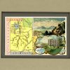 Founded in the 1860s, the Arbuckle Coffee Company grew and expanded with 19th century America. It was a staple the cowboys carried with them on the trail, and a commodity commonly found in American homes at the time. The Arbuckle Company made a unique advertising effort in the late 1880’s and began to enclose small decorative trade cards in their packages of coffee. The front of the card contained a colorful image of children, flowers, sports or even a map, while the back of the card had their advertising and some descriptive information. Later these trade cards became so collectible that the company focused on their success and issued them separately as premiums. These charming map cards illustrate beautifully the history and character the lands. Each map shows lakes and rivers, cities and towns, forts, the population, and area in square miles. Each card measures 3 1/4″ x 5 1/4″. The matted size is 8 x 10 inches.
