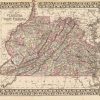 This map of Virginia and West Virginia was produced by Augustus Mitchell in 1879 for his New General Atlas. Highlights of this map are Mitchells traditional grapevine border, characteristic pastel coloring and abundant details of geographical features. This 1879 map offers a fascinating perspective of areas that have since undergone significant growth and change, in addition to the value as great examples of Mitchell’s classic map-making style.